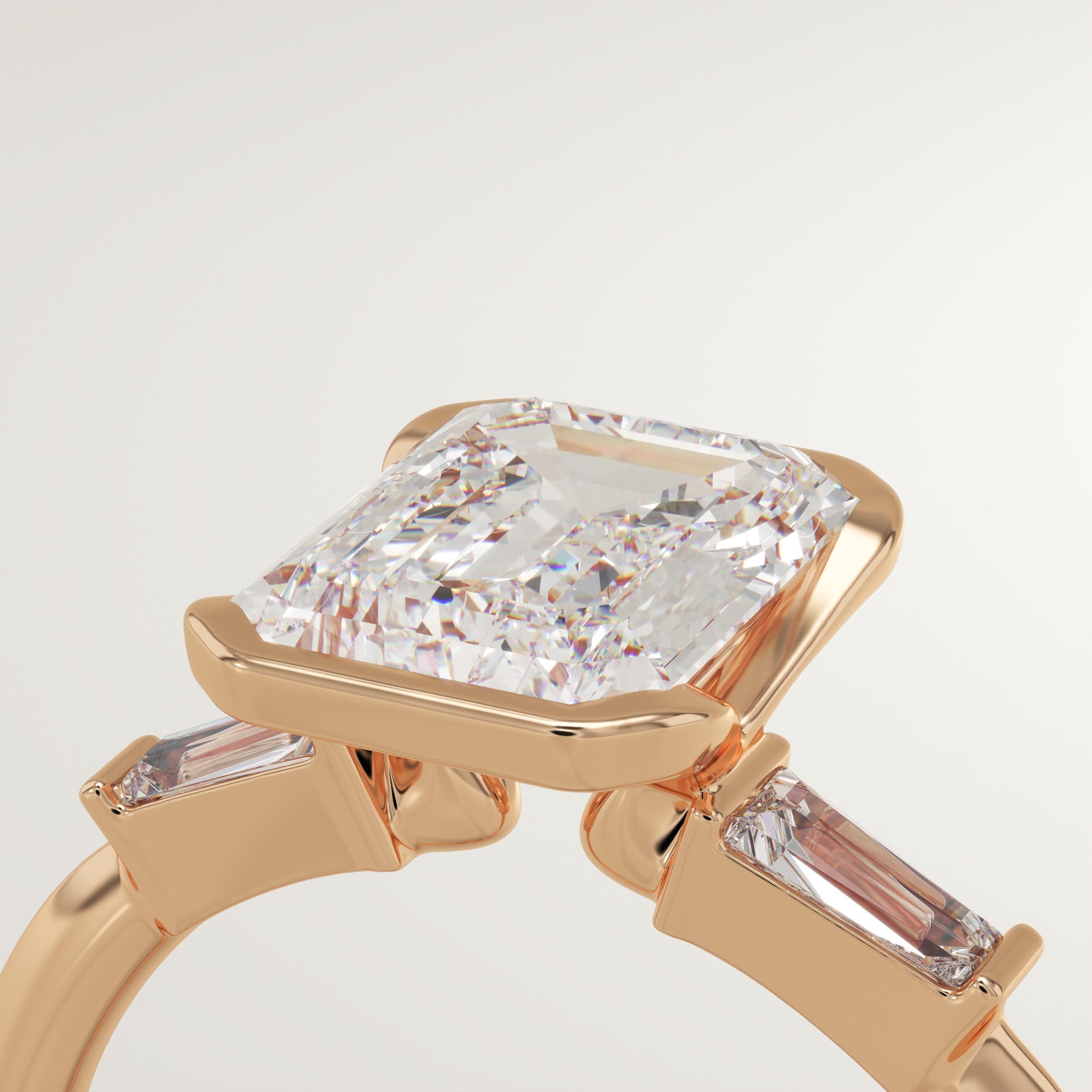 2.0 CT Emerald Cut Three Stone Half Bezel Lab-Grown Diamond Engagement Ring
