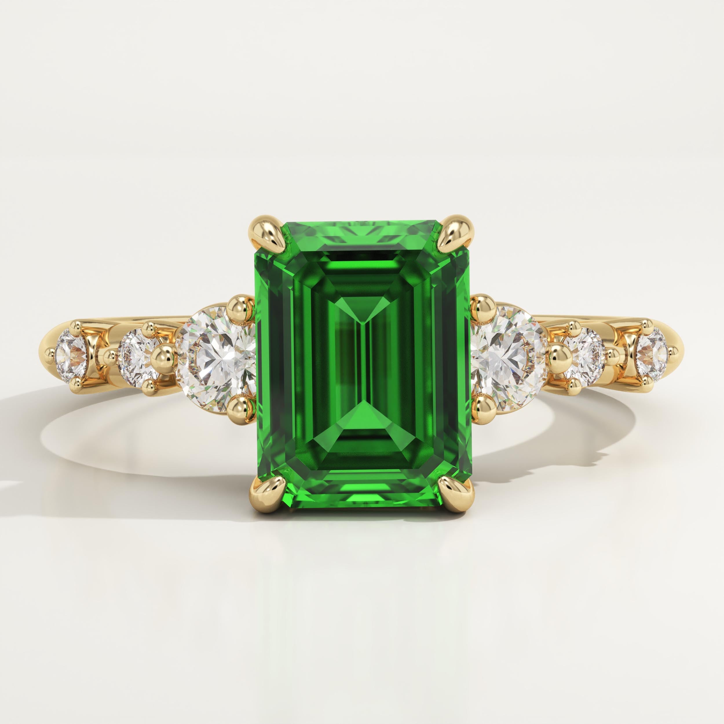 Timeless and vibrant, emerald rings are revered for their rich color and symbolism of new beginnings, loyalty and peace.