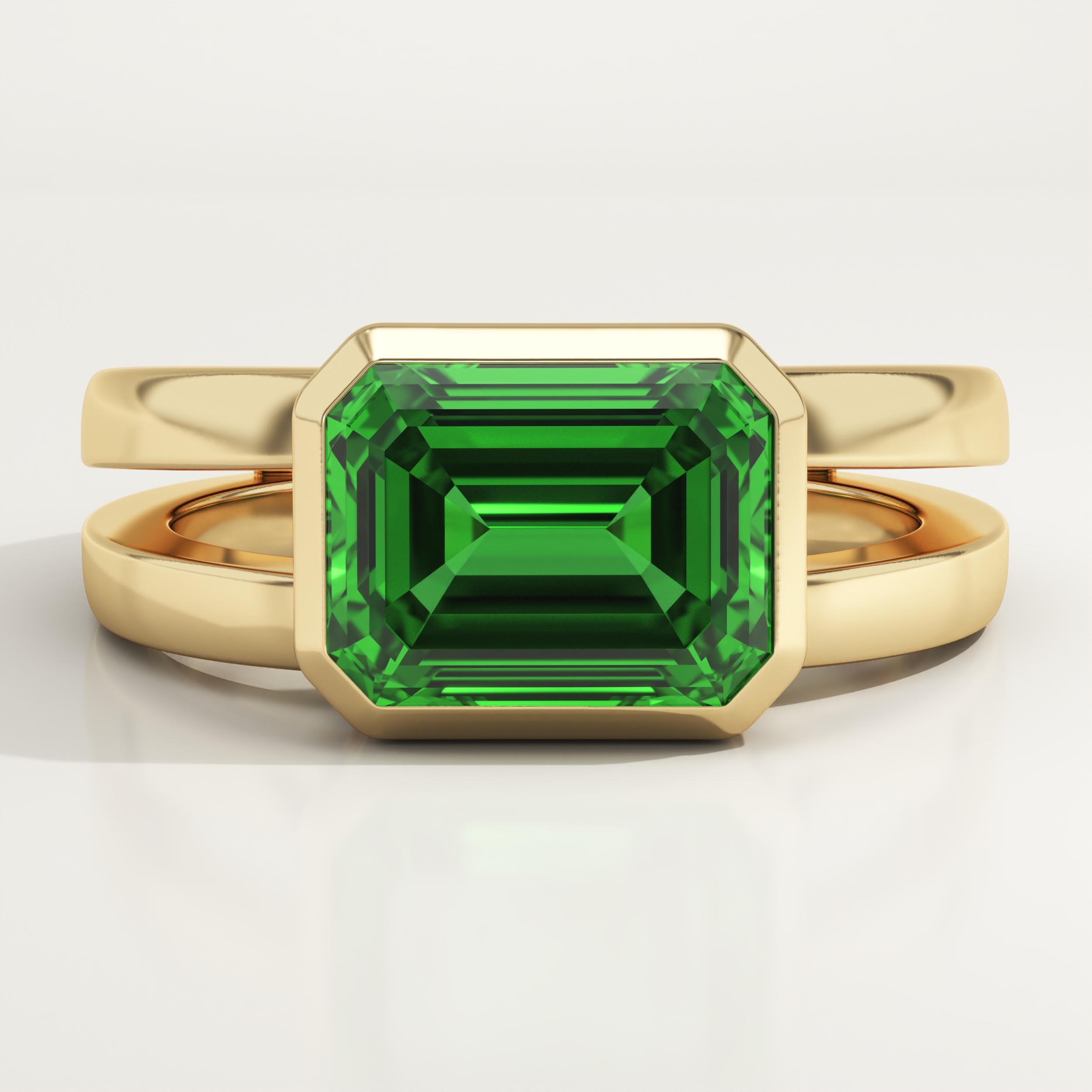 2.56 CT Emerald Cut Solitaire Split Shank May-Emerald Birthstone Engagement Ring