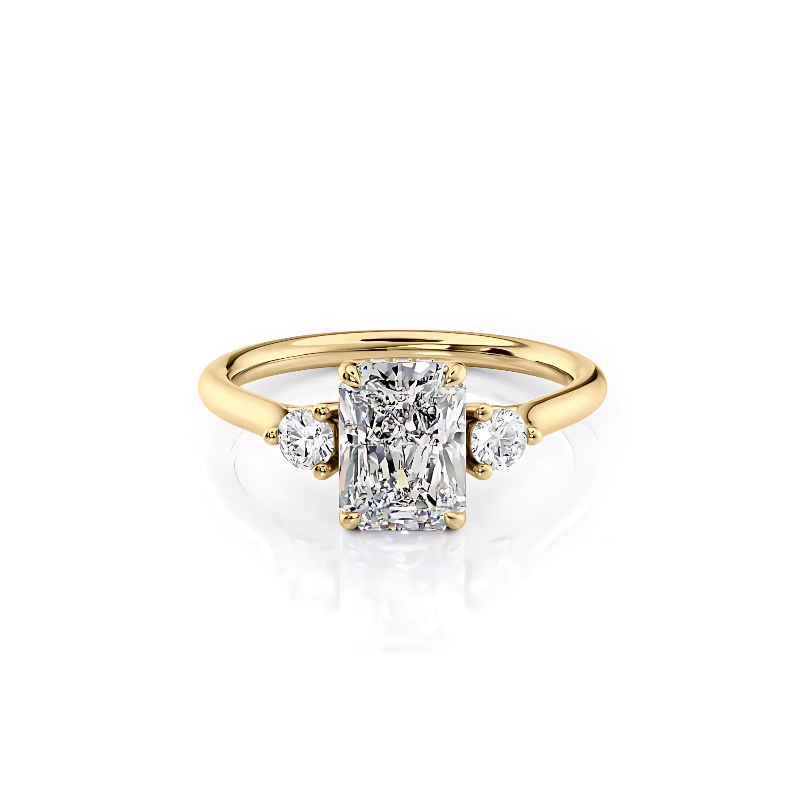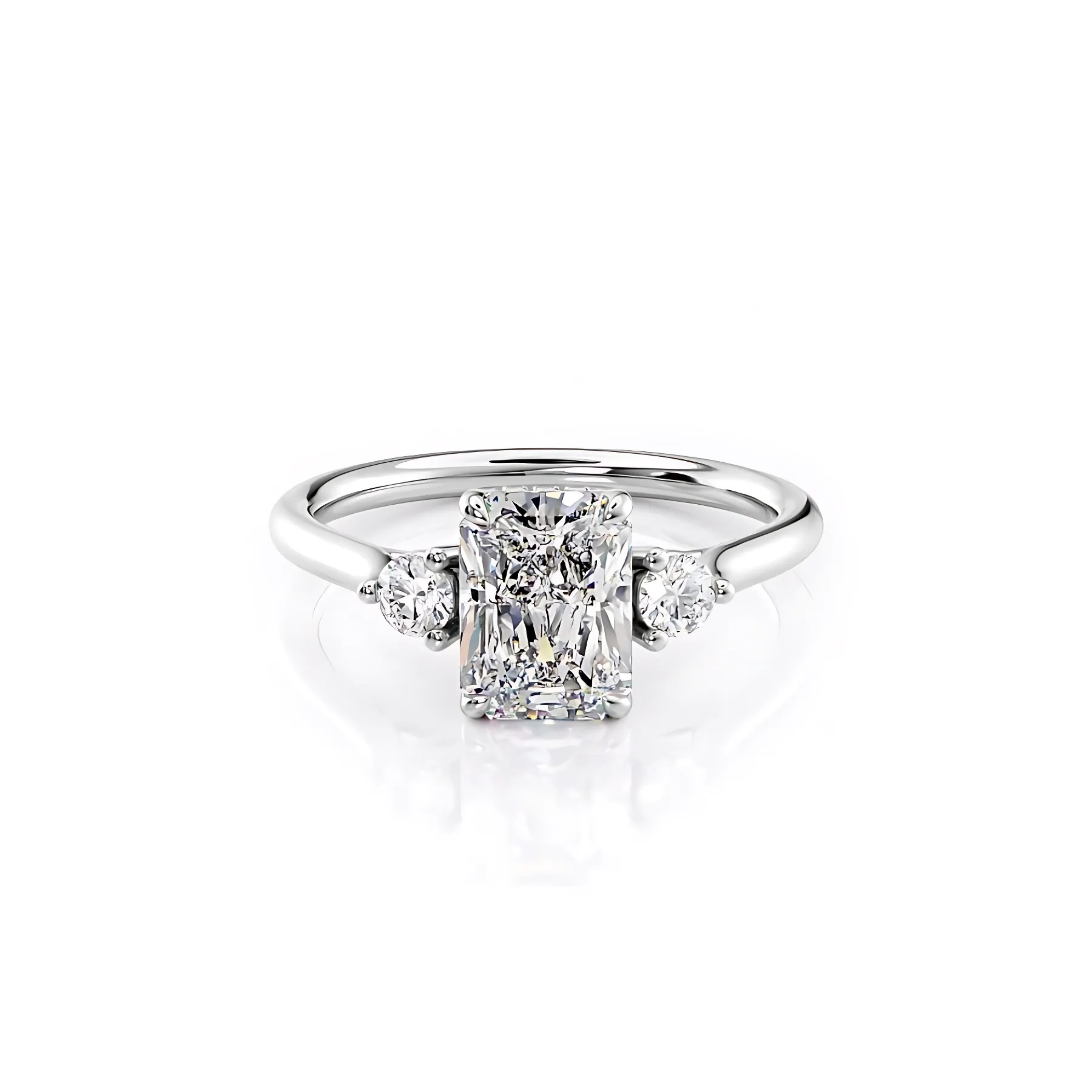 2 CT Radiant Cut Three Stone Hidden Halo Lab-Grown Diamond Engagement Ring