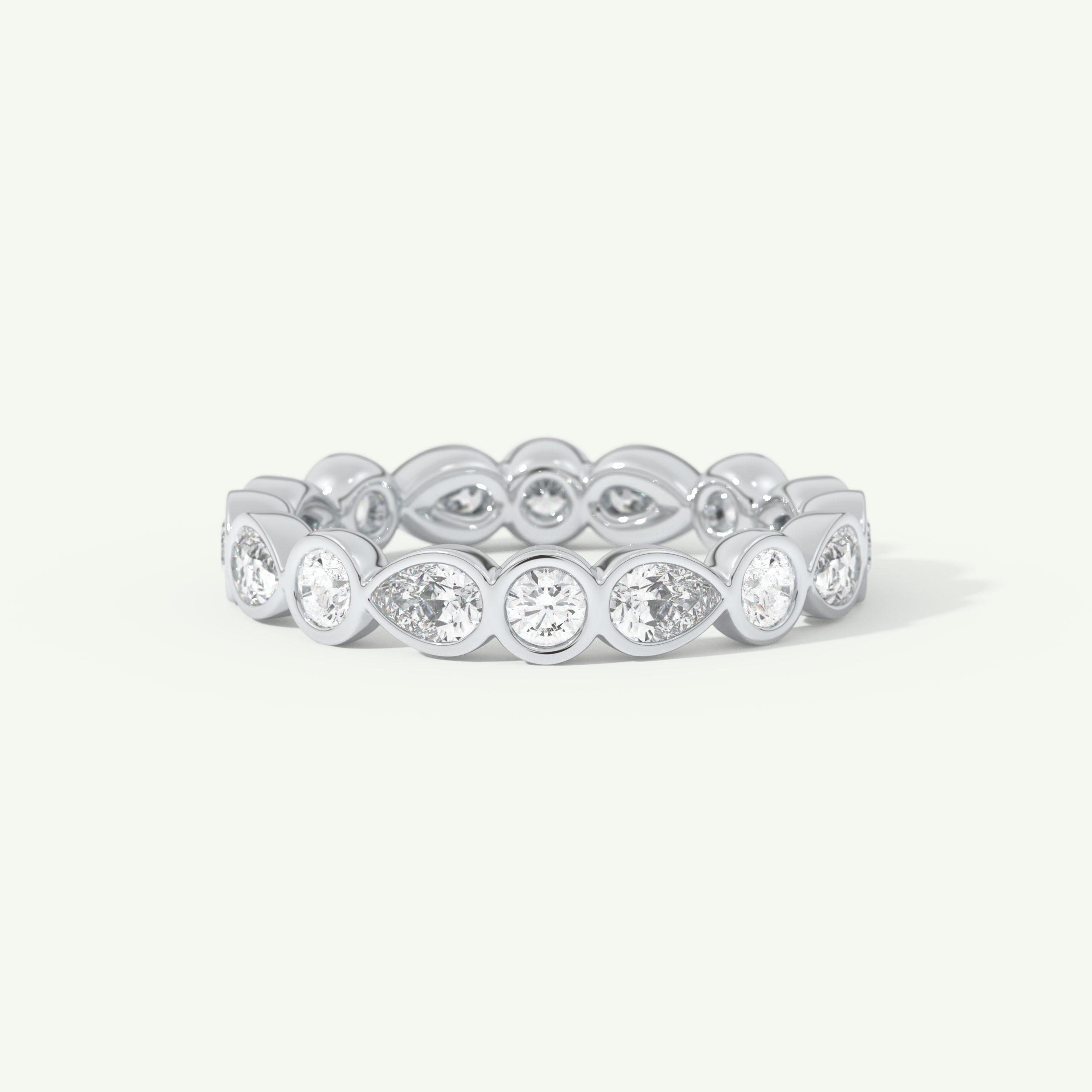 1.28 TCW Round & Pear Shaped Moissanite Full Eternity Wedding Band