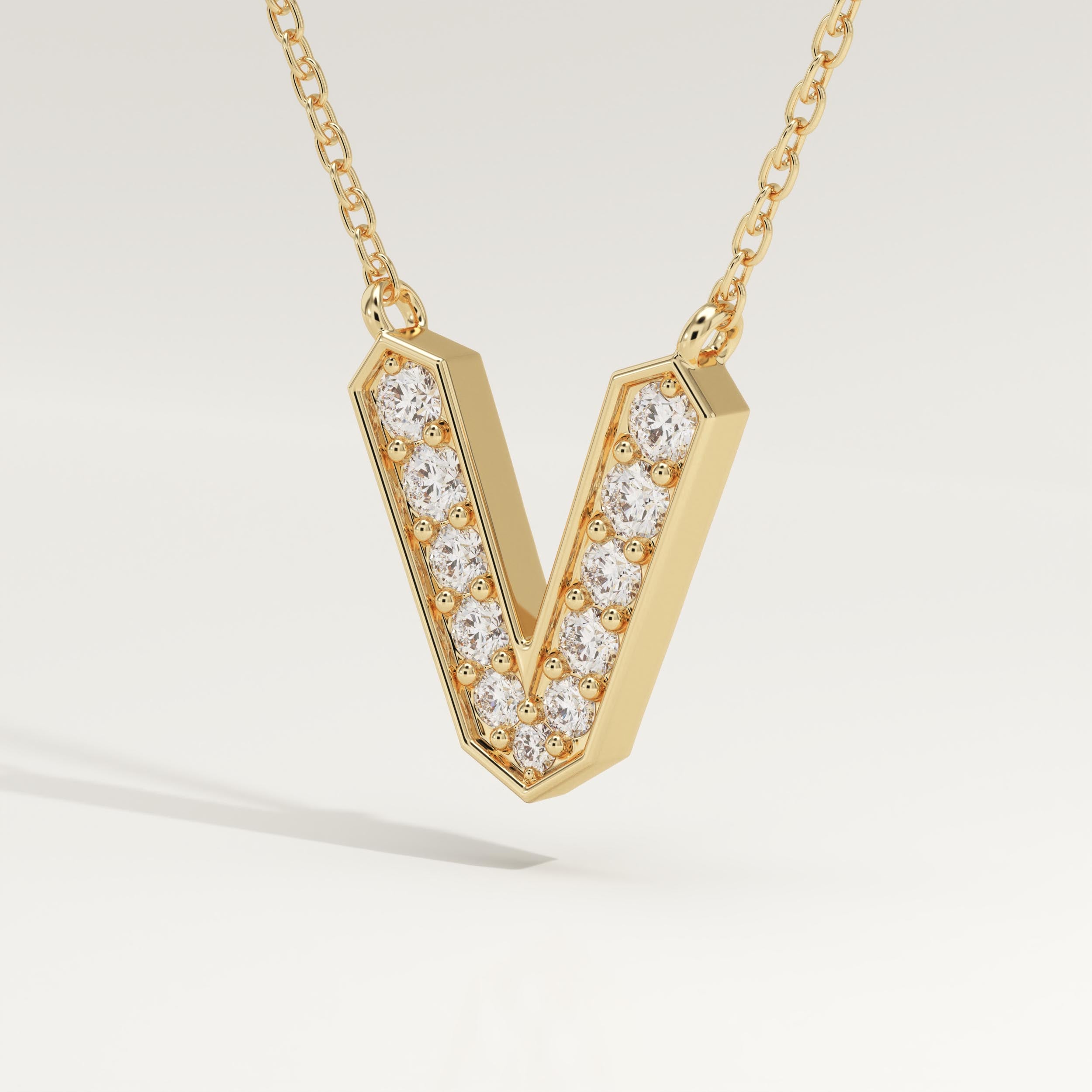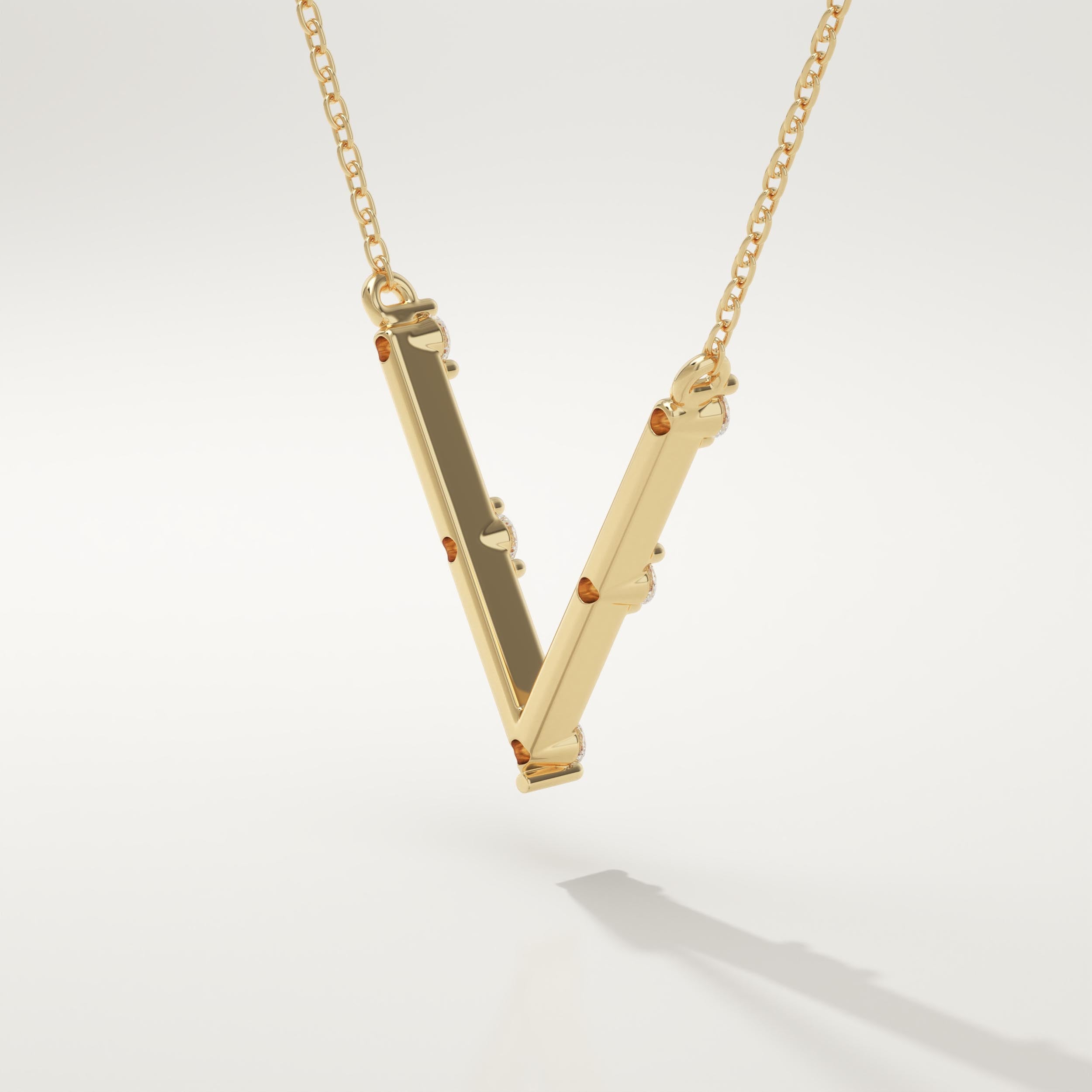 0.178 TCW Round Lab-Grown Diamond V Initial Necklace
