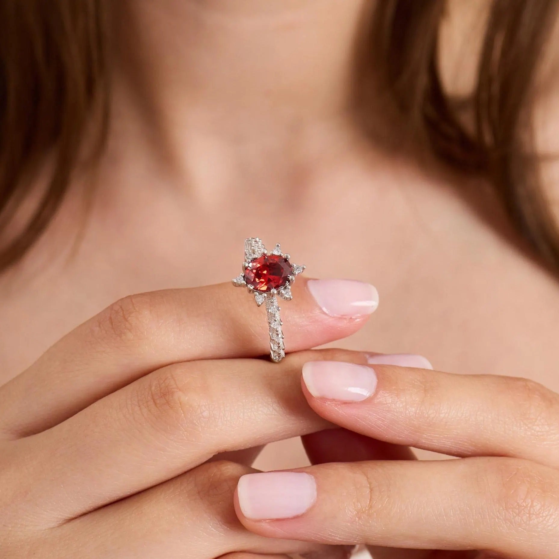 1 CT Oval Cut Cluster July-Ruby Birthstone Engagement Ring