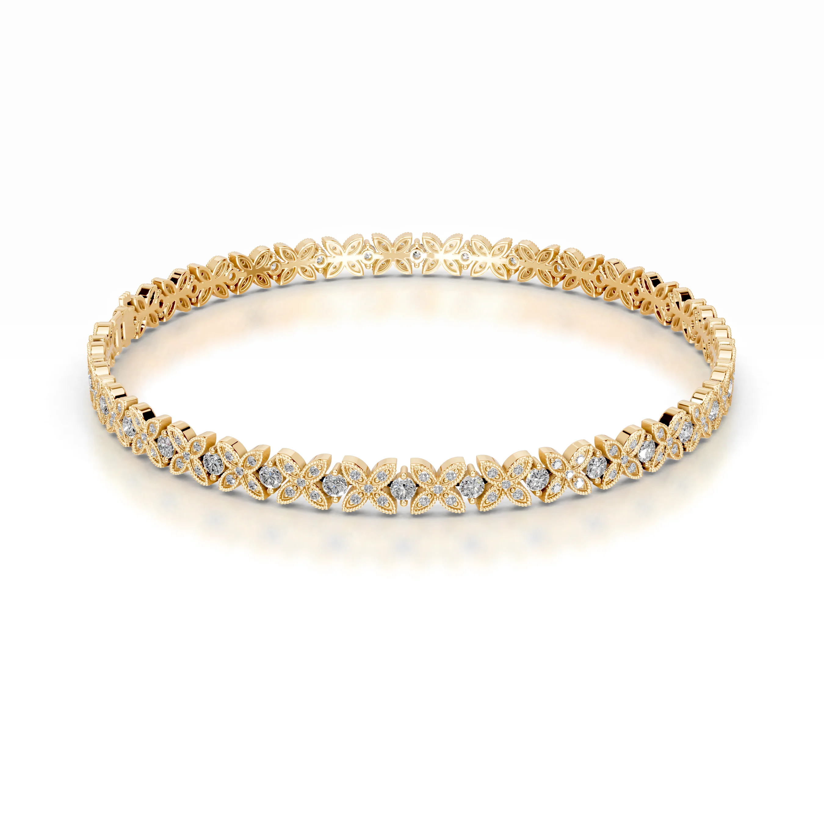 Meticulously crafted in solid gold, the bracelet is available in your choice of: