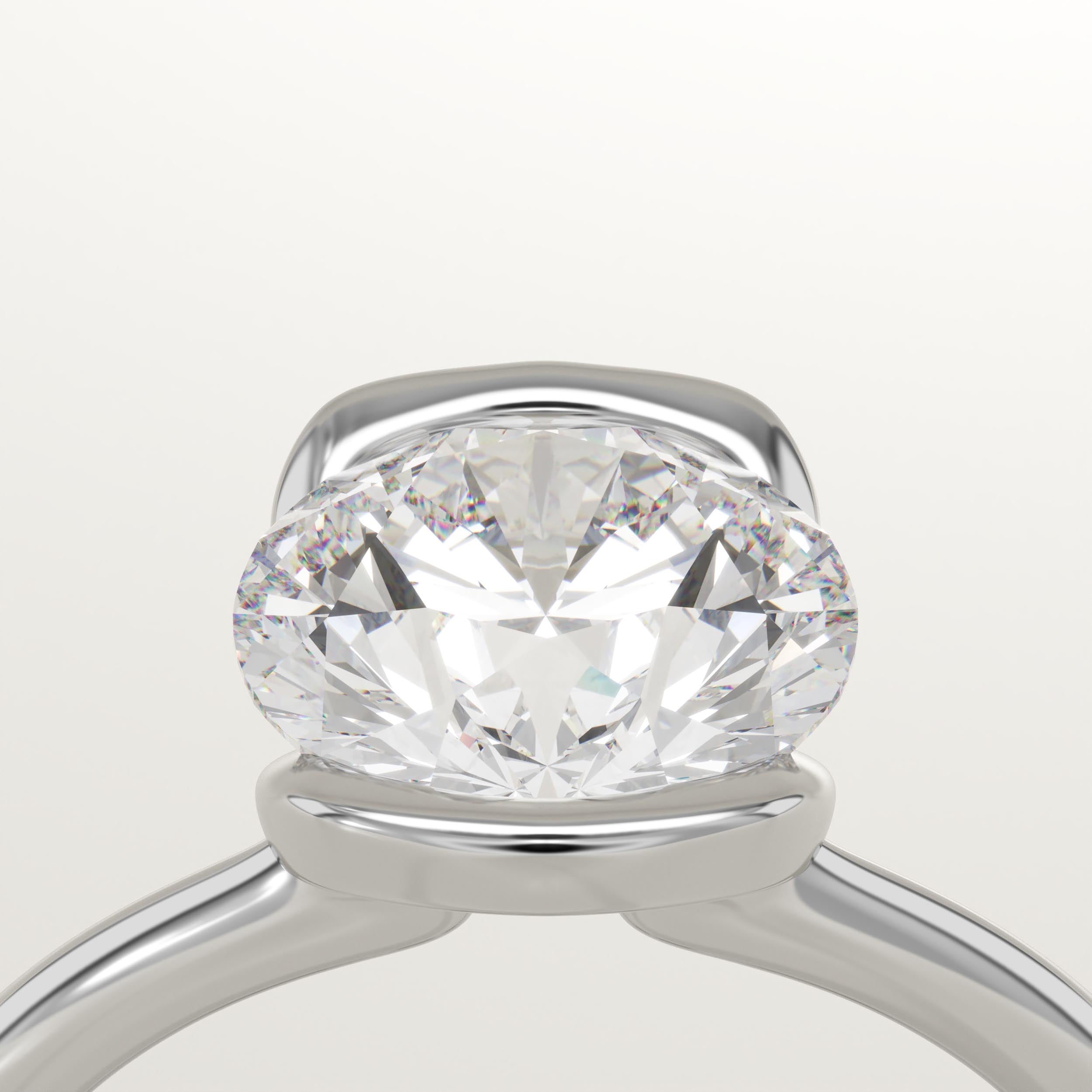 2.0 CT Round Cut Half Bezel Lab-Grown Diamond Engagement Ring