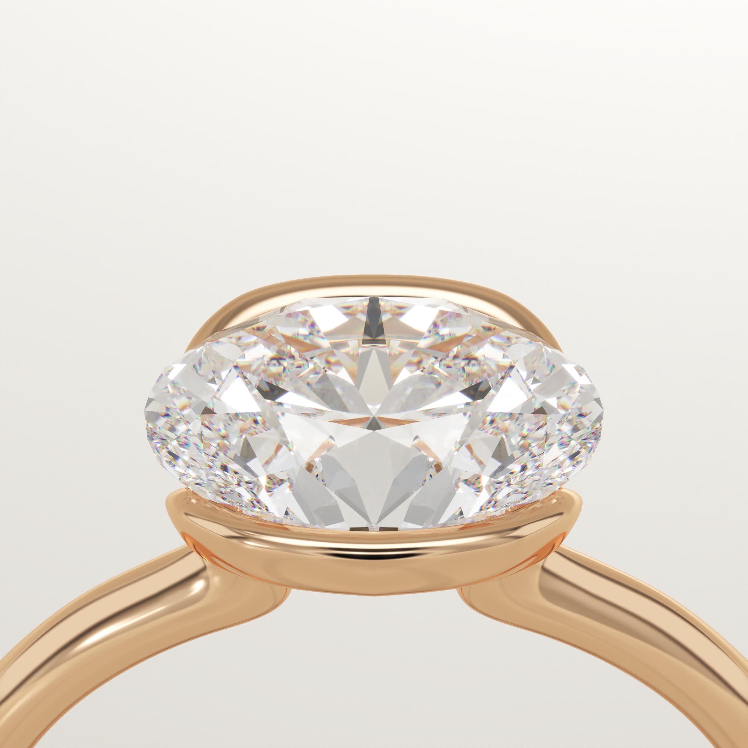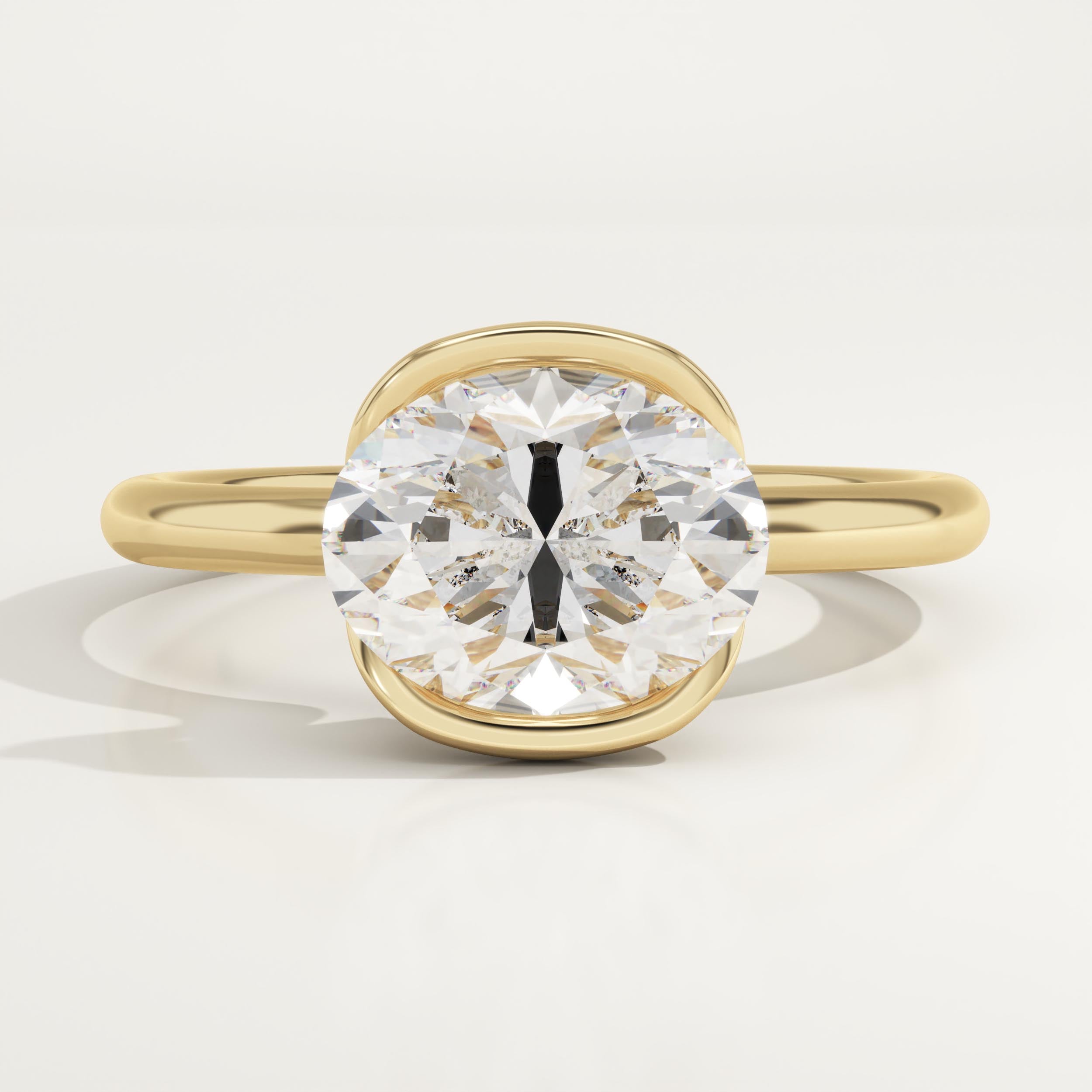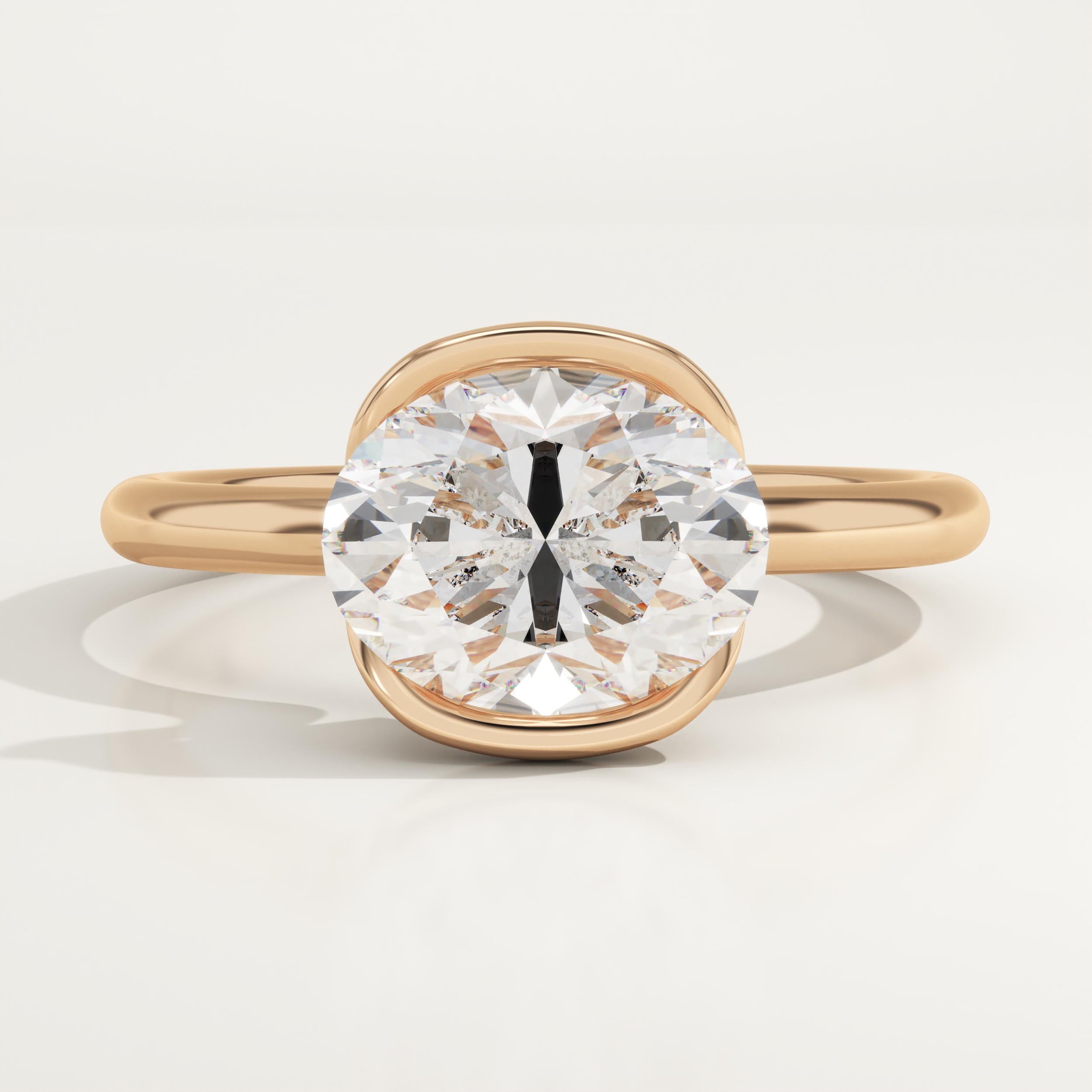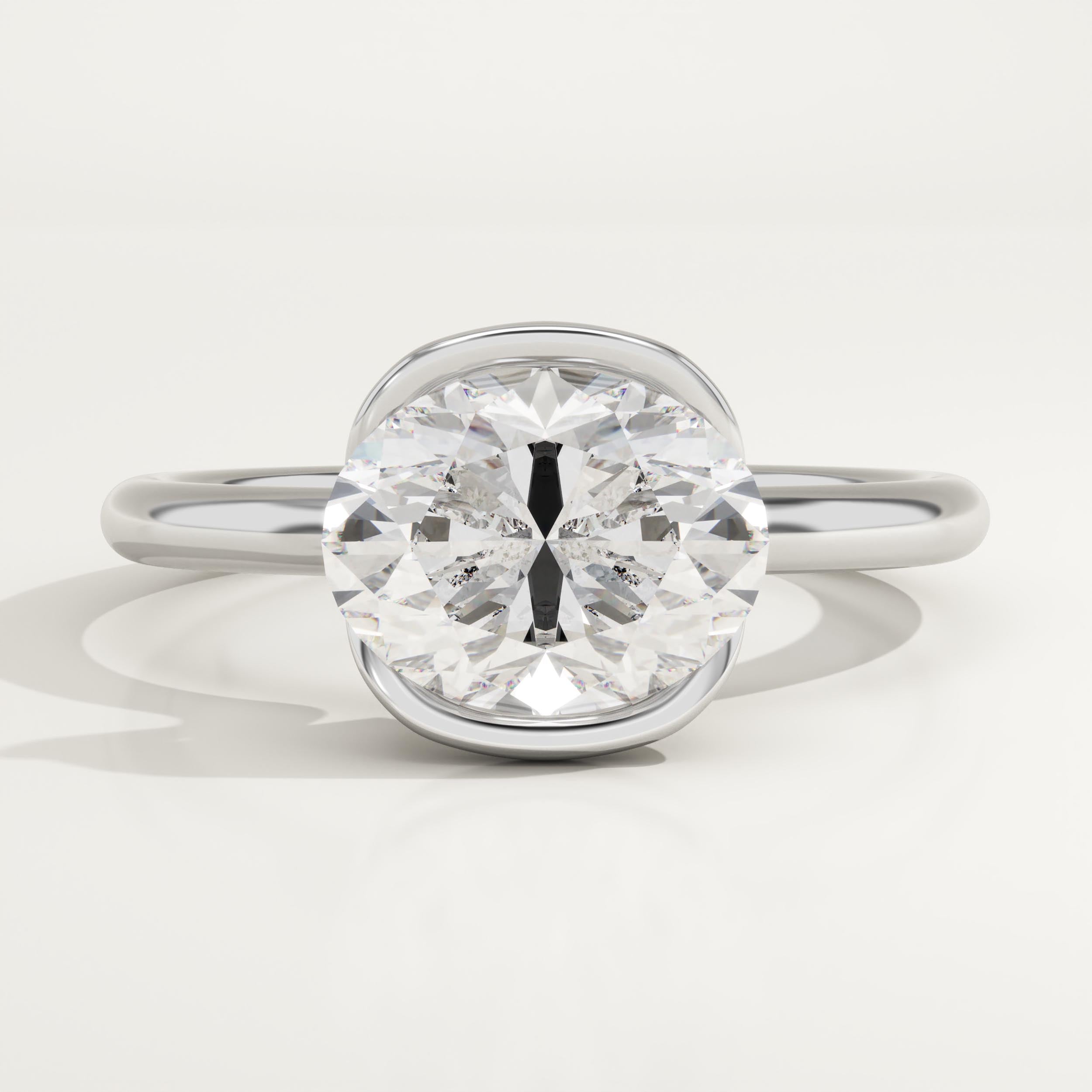 2.0 CT East West Oval Cut Half Bezel Lab-Grown Diamond Engagement Ring