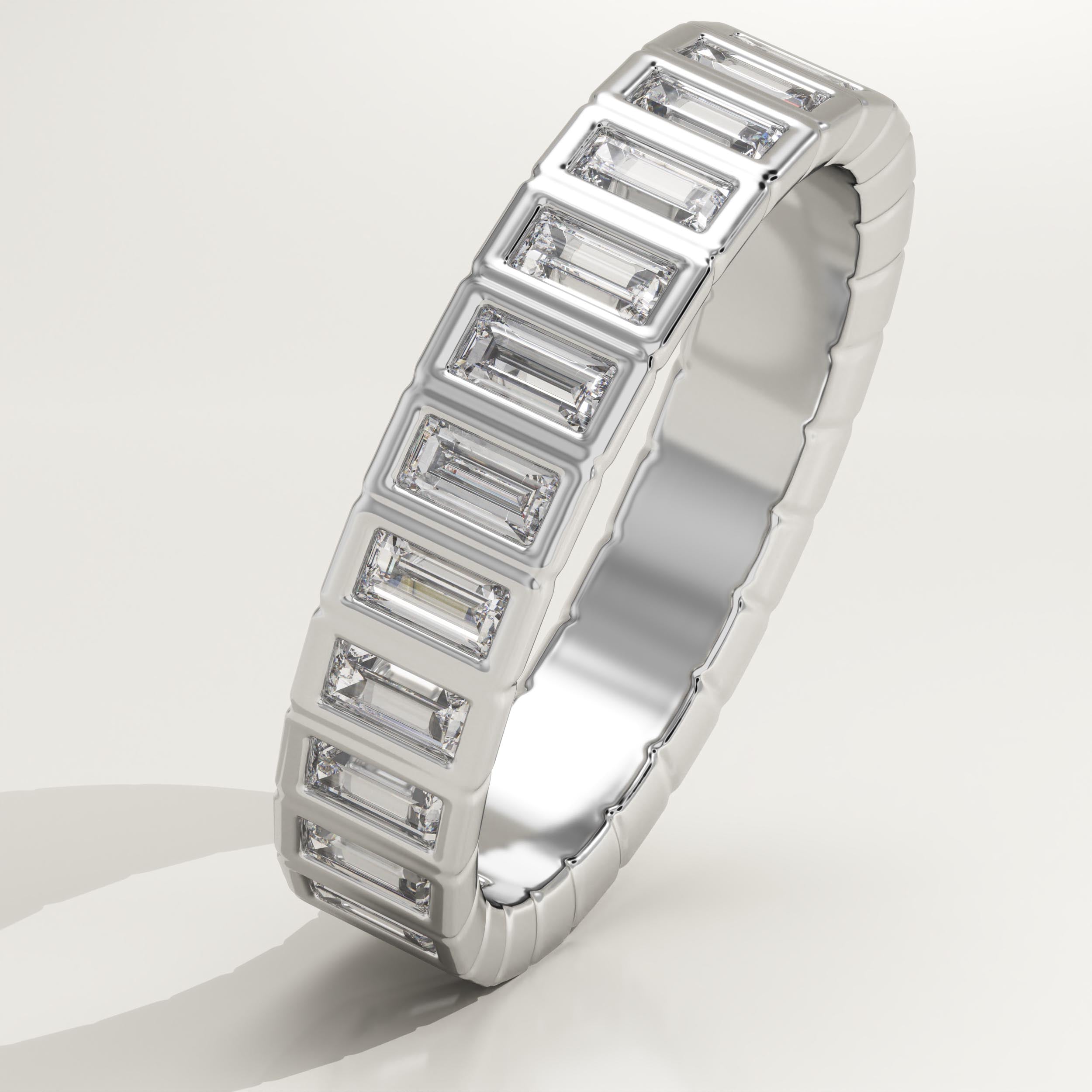 0.44 TCW Baguette Cut Lab-Grown Diamond Half Eternity Bezel Wedding Band