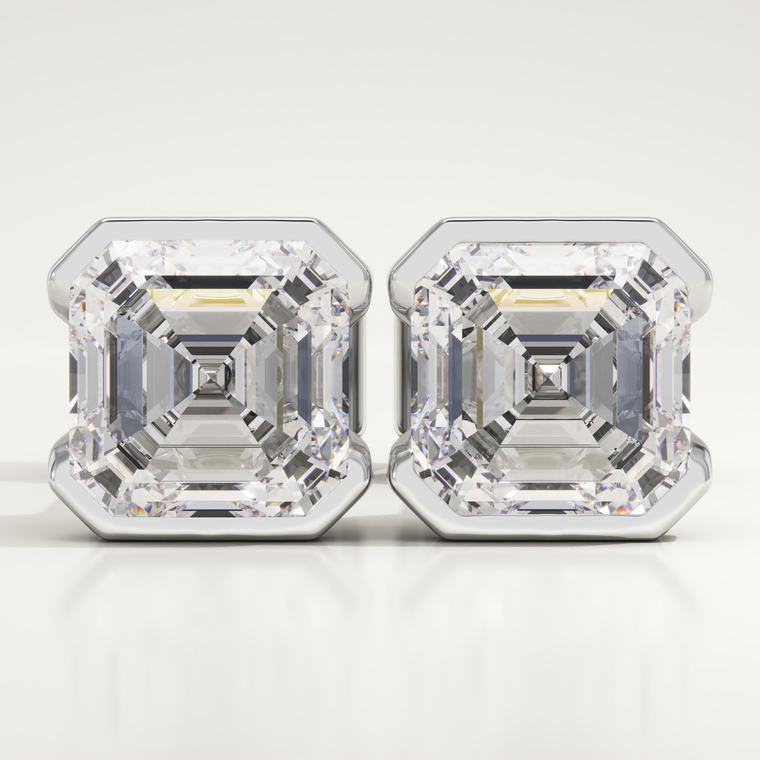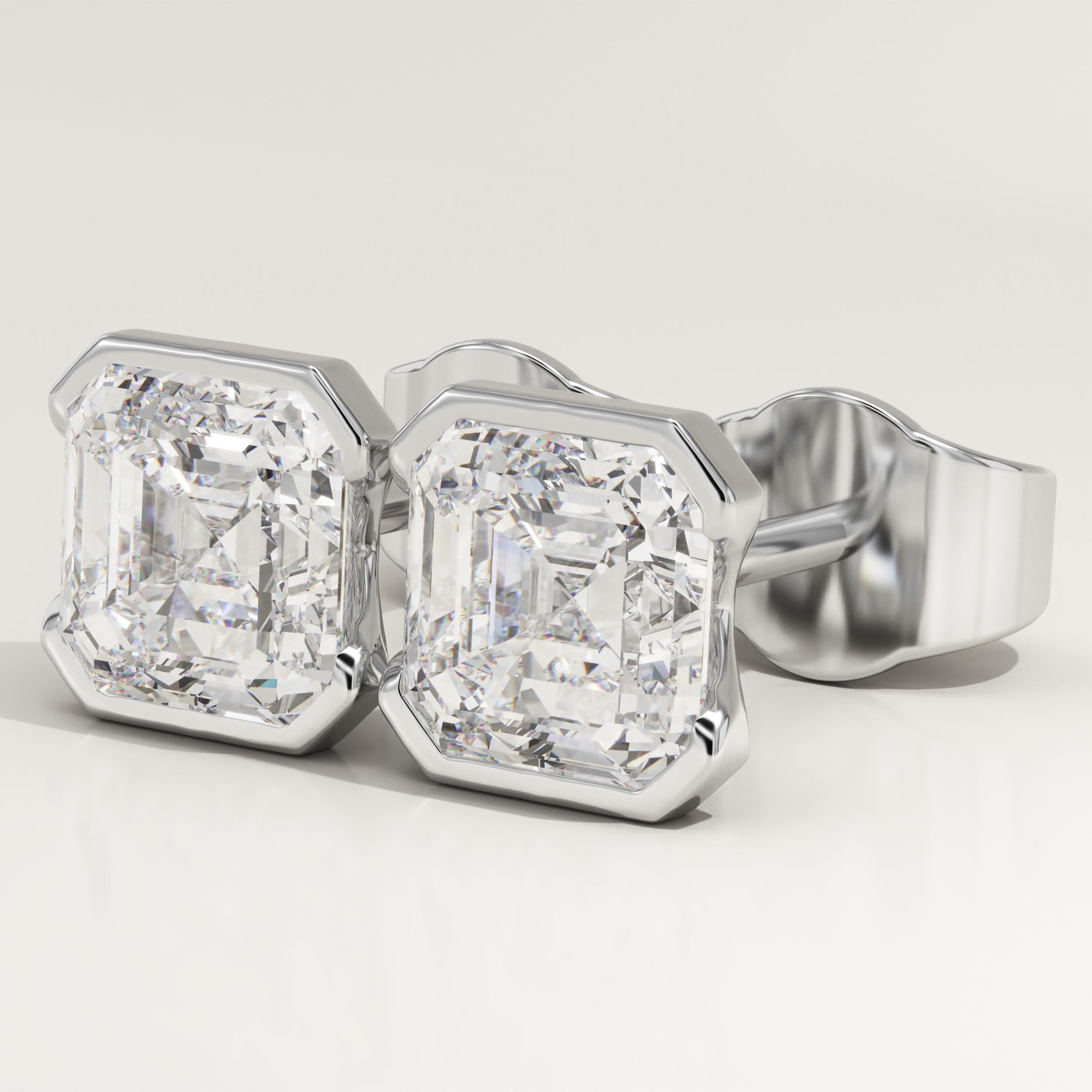 1 TCW Asscher Half Bezel Lab-Grown Diamond Stud Earrings