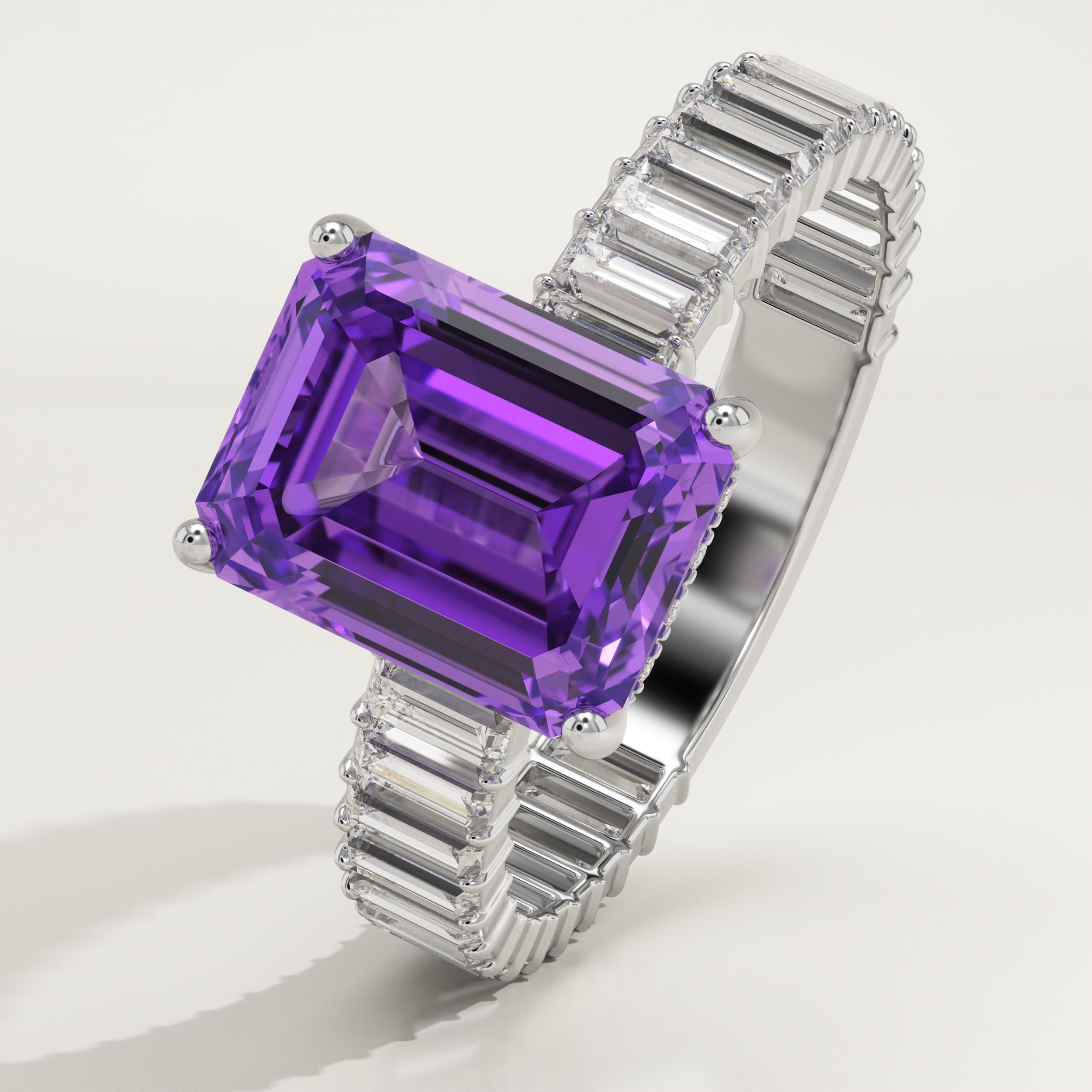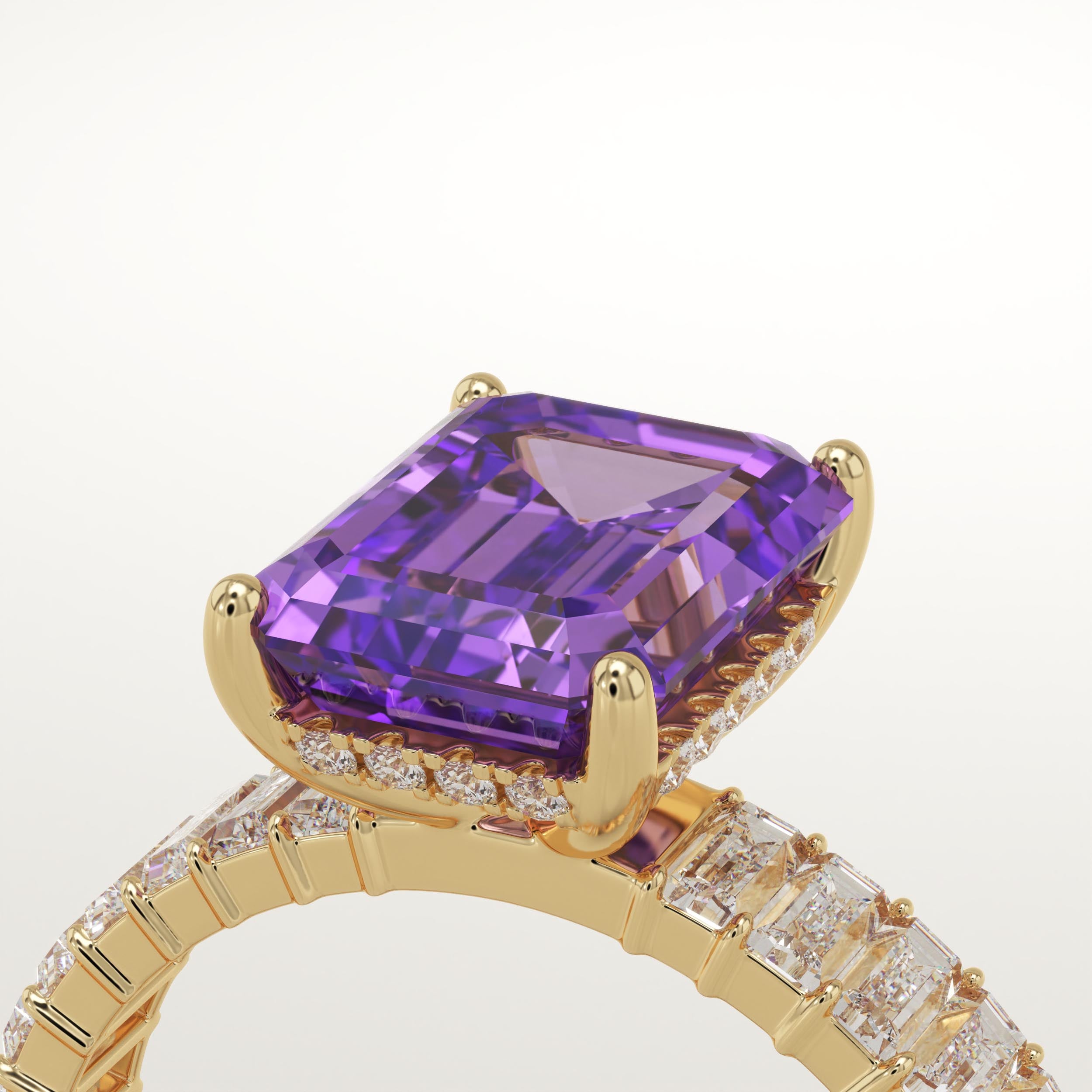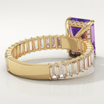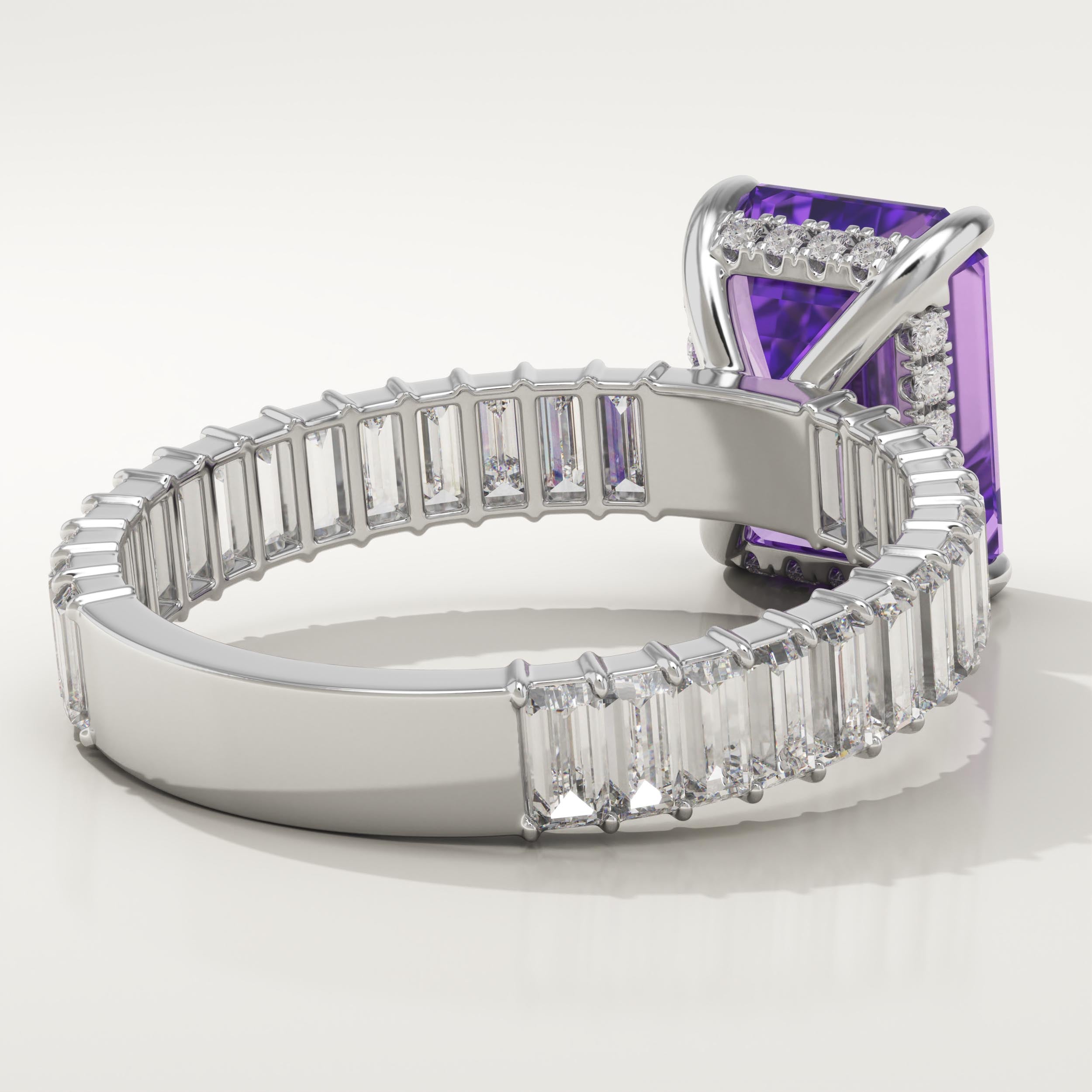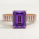 2.56 CT Emerald Cut Hidden Halo & Pave February-Amethyst Birthstone Engagement Ring