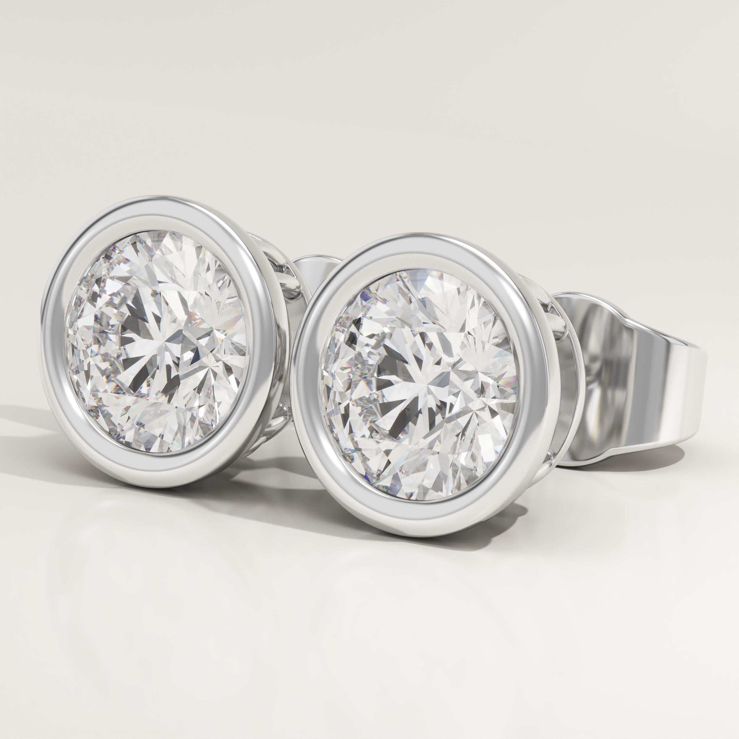 1 TCW Round Bezel Lab-Grown Diamond Stud Earrings