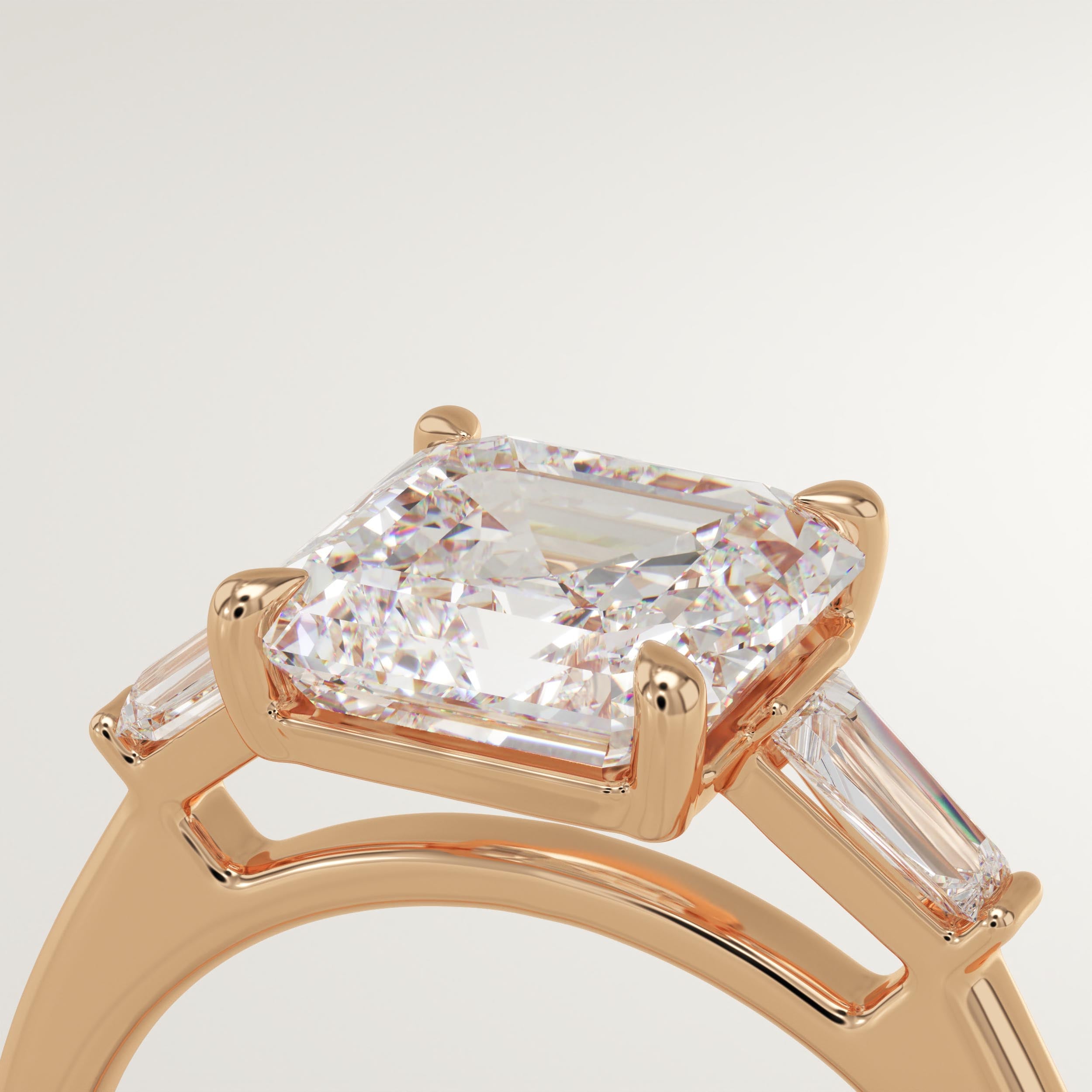 2.0 CT Asscher Cut Three Stone Lab-Grown Diamond Engagement Ring