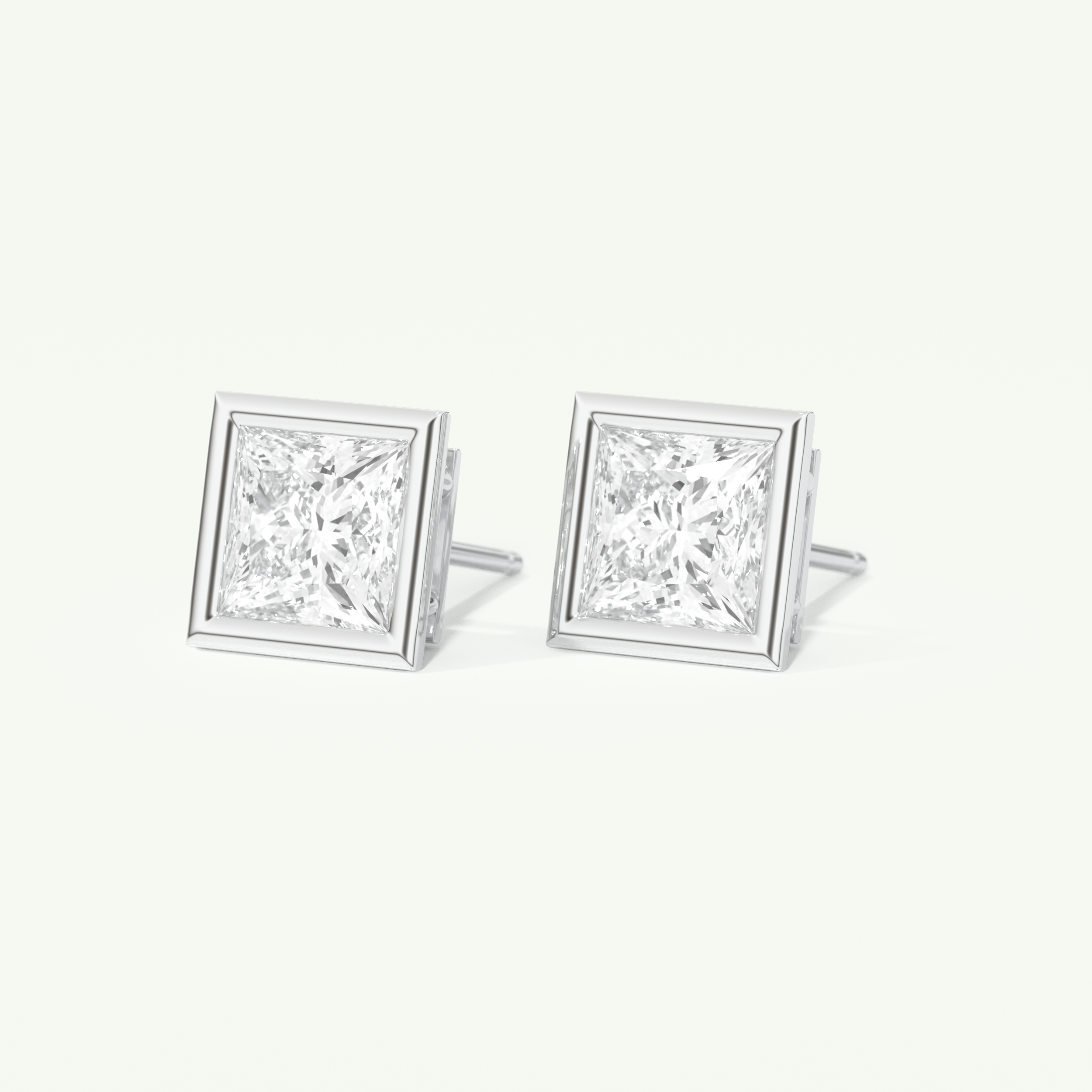 1 TCW Princess Cut Moissanite Bezel Stud Earrings in Gold